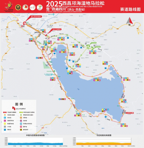 今年“西馬”賽道在延續往年經典的基礎上進行了細節優化。賽道以西昌火把廣場為起點,穿過城市主干道路,自北向南延伸,環邛海行進,35.9公里在風景如畫的邛海濕地景區,6.3公里在城市景區道路,串聯起月亮女神雕塑、青龍寺、金粼沙灘、夢里水鄉等多個西昌城市地標和知名景點,人在景中跑、景因人生動,真正實現賽事內容與城市風貌的完美融合。