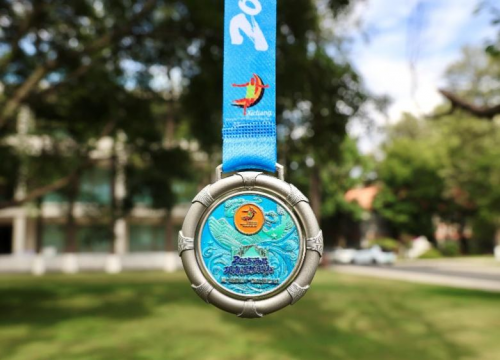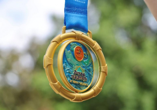 今年的“西馬”賽事完賽獎牌頗具亮點,以邛海為靈感,獎牌正面采用藍綠漸變色調,象征邛海碧波與濕地生機。背面設計以金色為主調,輔以藍色閃沙勾勒的邛海地形輪廓,凸顯民族地域特色。獎牌把邛海的靈動、西昌城市的朝氣和馬拉松的拼搏精神融為一體,堪稱一張精美的“西昌名片”。