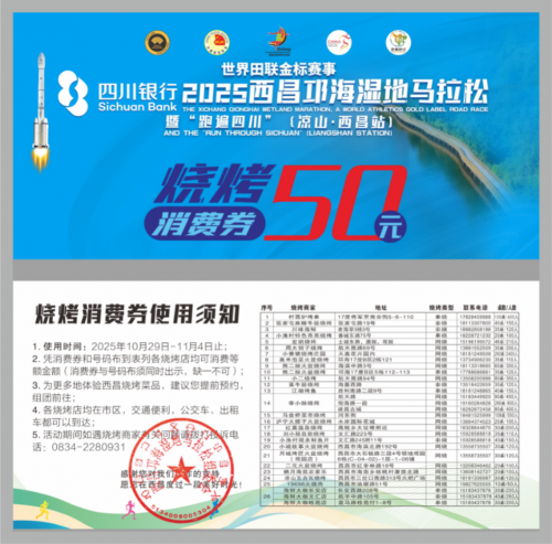 為讓跑友們在西昌跑得暢快、玩得盡興、吃得過癮,組委會特別奉上誠意滿滿的“西馬旅游大禮包”:內含50元西昌燒烤消費券、30元邛海游船消費券等豐富福利;10月31日至11月2日期間,選手可憑號碼布免費乘坐西昌市區公交車;更令人心動的是,10月29日至明年1月18日,憑參賽號碼布、身份證及組委會提供的專屬門票,選手可暢游州內八大重點景區,包括螺髻山、瀘沽湖、彝海、靈山、會理鐵廠紅、西昌建川電影博物館聚落、安哈彝寨仙人洞、黃聯土林,盡享免票禮遇。